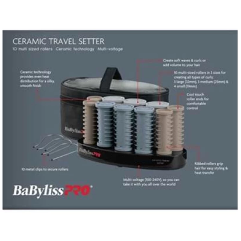 BabylissPRO Travel Rollers are dual voltage rollers that come packaged in a 10 piece set. These multi-style roller set contains 4 small, 3 medium and 3 large rollers. Ceramic technologyâ„¢ provides even heat distribution for a silky,