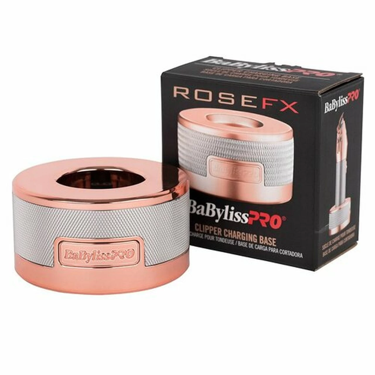 Charging never looked so cool. BaBylissPRO RoseFX Hair Clipper Charging Base is a quality charging dock with metal base and a knurled metal grip. Designed for balance and weight, this charging base fits all FX870 BaBylissPRO Hair Clippers. In three popular, original colorways, this charging base is great for mixing and matching with your hair clipper. Perfect for in-salon or at-home, this is convenience and organisation all in one.Â