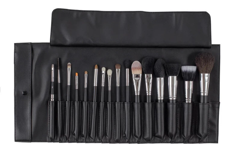 The BodyographyPro Brush set features 15 professional-grade, cruelty-free brushes made from synthetic hair. Our brushes are designed with the professional makeup artist in mind, covering every tool needed to create a flawless look. This set comes in a sleek, faux-leather brush roll with fitted slots for each brush—style and functionality at its finest. Brushes are sold as a set and separately to fit every artist’s needs.