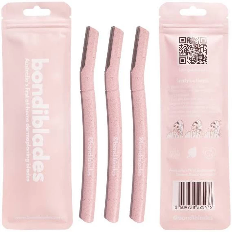 Single pack of 3 bio-degradable wheat straw handle dermaplaning blades.