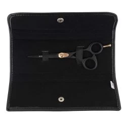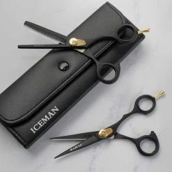 Iceman’s chicest scissors ever. In all black with gold detailing, Iceman Blaze 5.5” Black Offset Hairdressing Scissors feature hand-honed stainless steel blades for truly exceptional cutting performance. A great choice for precision work, these scissors have superb ergonomics with an offset handle, removable finger rest and adjustable, raised tension dial. Ideal scissors for apprentices or a backup pair for your hairdressing kit.