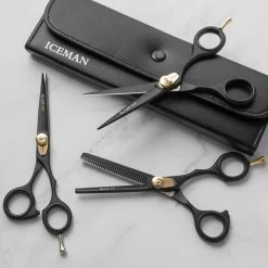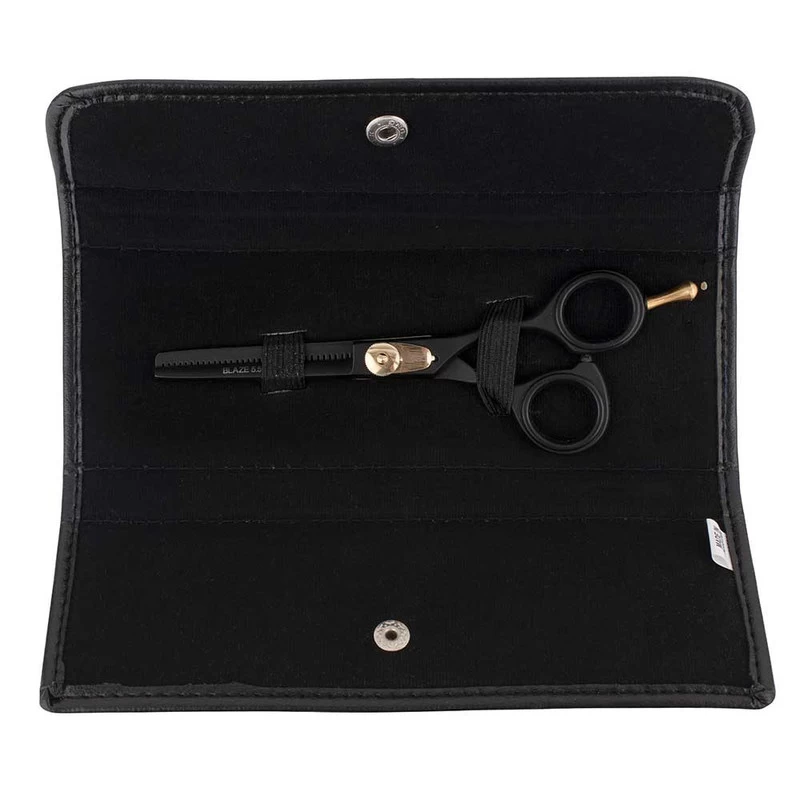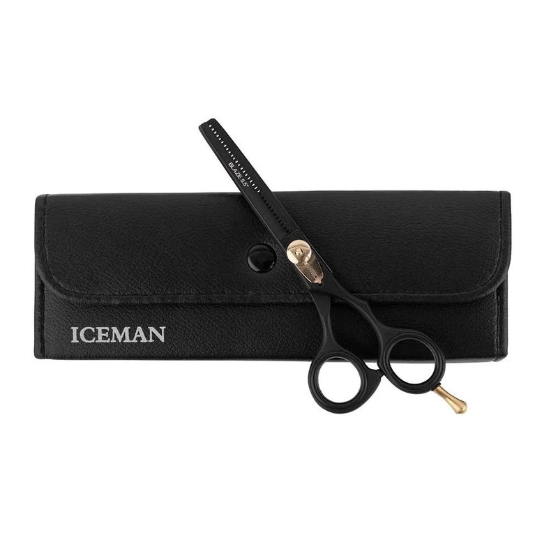 Iceman’s chicest thinner ever. In all black with gold detailing, Iceman Blaze 5.5” Black Hairdressing Thinner features hand-honed stainless steel blades for truly exceptional cutting performance. Perfect for thinning any length of hair, this thinner has superb ergonomics with an offset handle, removable finger rest and adjustable, raised tension dial. Ideal thinner for apprentices or a backup pair for your hairdressing kit.