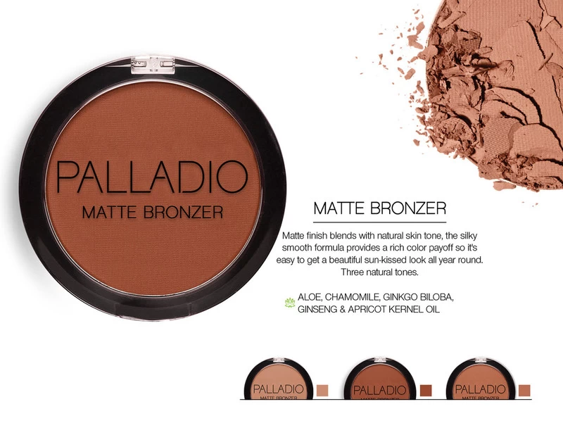 Matte finish blends with natural skin tone, the silky smooth formula provides a rich color payoff so it’s easy to get a beautiful sun-kissed look all year around. Three natural tones.