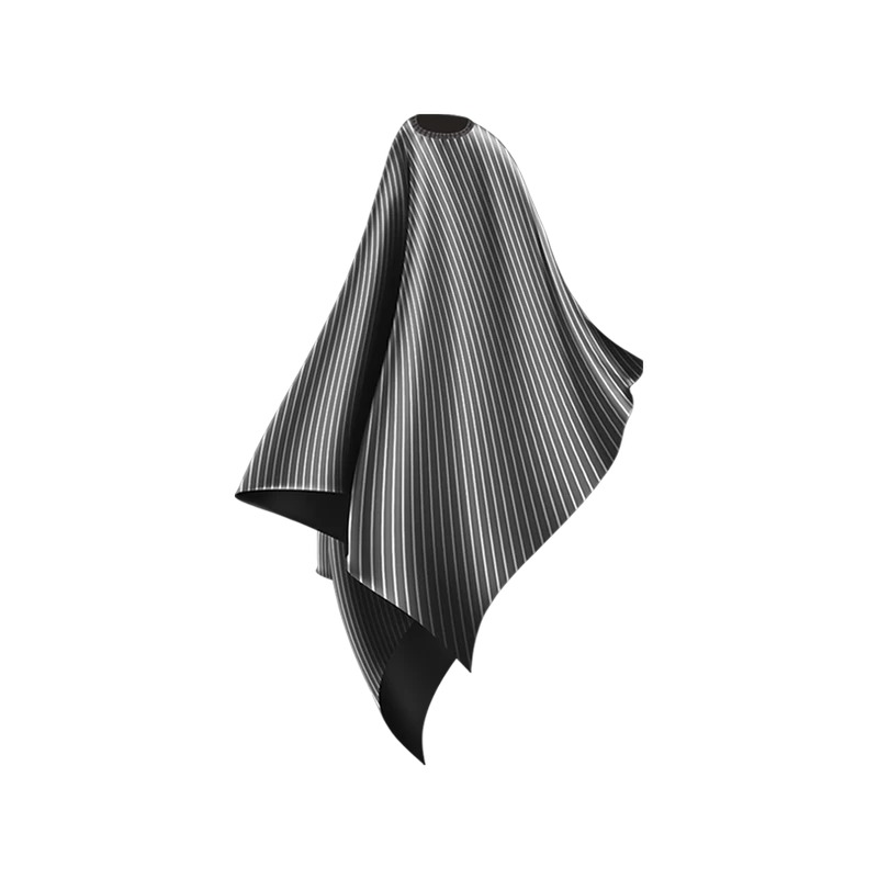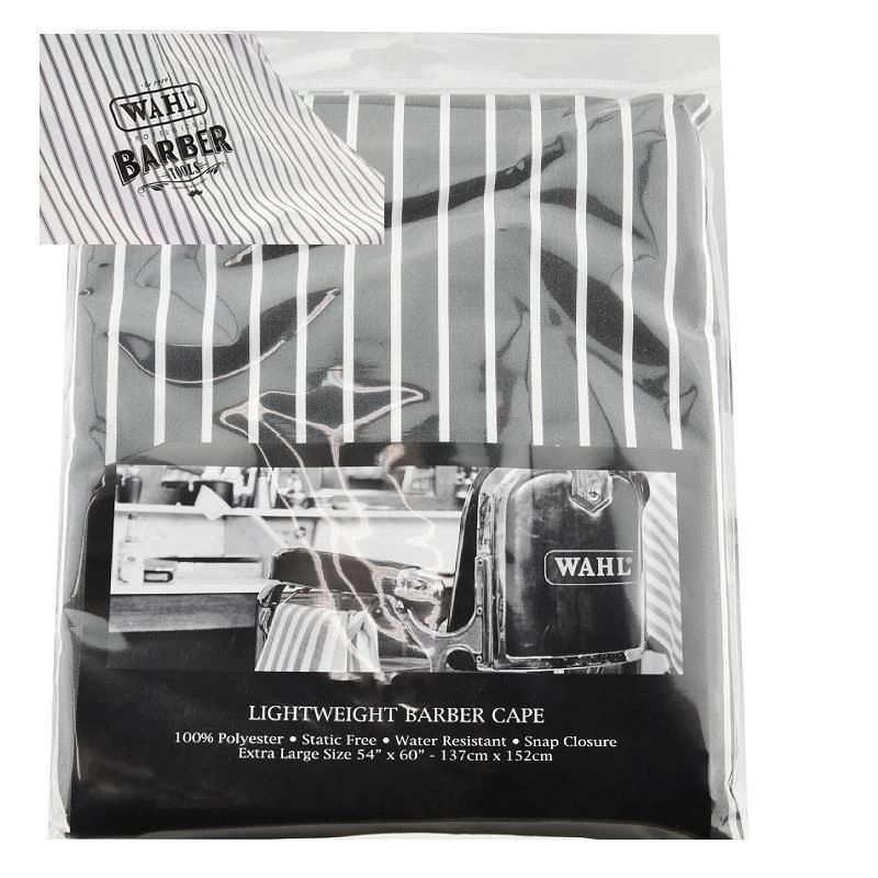 Designed as an extra large size for more coverage, this 100% Polyester lightweight cape is static free and water resistant. It has a snap closure and comes in a stylish pin stripe design.